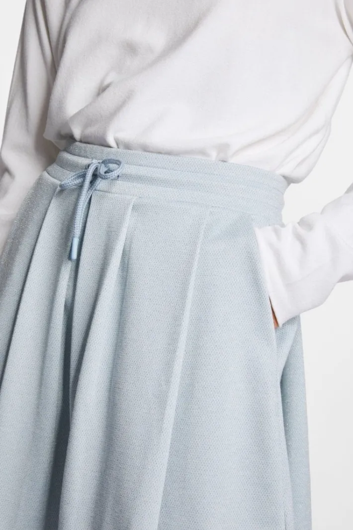 Durch seine ausgestellte Form aus festem, GRS-zertifiziertem Jacquard-Material mit Glanzgarn präsentiert sich dieser Minirock unverschämt lässig. Seine Falten münden in einem Bund mit Kordelverschluss. Seitentaschen bringen Extrakomfort.