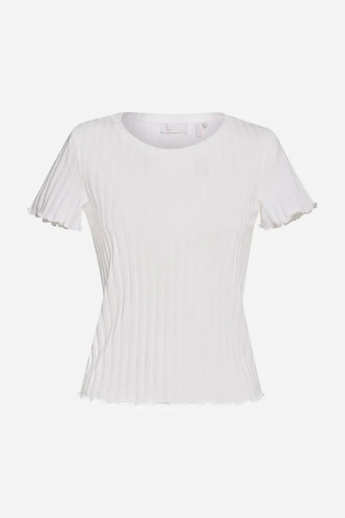 Dieses figurbetonte Rippshirt verleiht Deinen Outfits einen femininen Touch. Der zarte Babylock-Saum sorgt für eine subtile Verspieltheit, die jedem Casual-Look den letzten Schliff gibt!