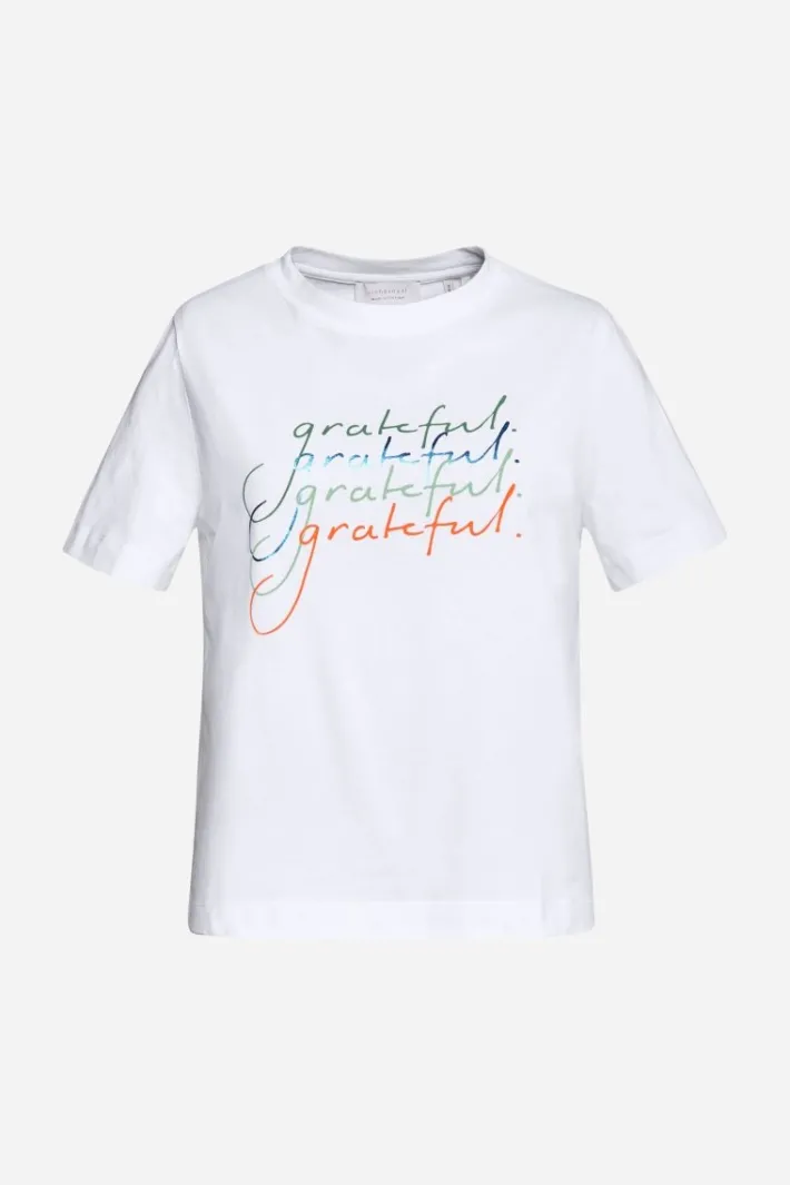 Dieses weiße T-Shirt präsentiert sich mit einem stylischen Typografie-Print in sommerlichen Farben, der alle Blicke auf sich zieht! Der lässige Schnitt und der hochwertige Baumwollstoff garantieren ein komfortables Tragegefühl.