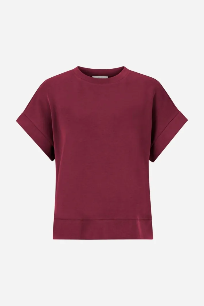 Dieses Oversize-T-Shirt in Burgunderrot aus kuscheligem Scuba-Jersey wird durch seine Super-Soft-Qualität und die lässige Passform zum It-Piece für legere Alltagslooks. Für ein harmonisches Outfit kannst Du es mit der dazugehörigen Hose kombinieren.
